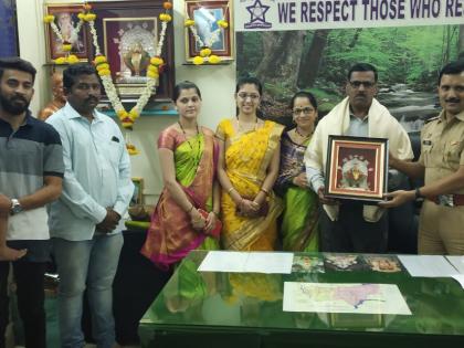 लक्ष्मीपुरी पोलीस ठाण्यात सेवानिवृत्त हवालदार चंद्रकांत जाधव यांचा सहकुटुंब सत्कार करताना पोलीस निरीक्षक वसंत बाबर.
