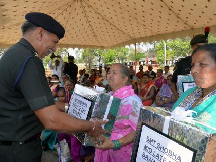 कोल्हापुरातील टेंबलाईवाडी येथील १०९ इन्फंट्री बटालियन (प्रादेशिक सेना), मराठा एल आय, कोल्हापूर मिलिटरी स्टेशन येथे रविवारी माजी सैनिकांसाठी आयोजित मेळाव्यात जिल्ह्यातील वीरपत्नी व वीरमातांचा सन्मान करताना लेफ्टनंट जनरल विश्वंभर सिंग. (छाया : नसीर अत्तार)