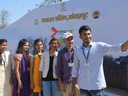 कोल्हापुरात शुक्रवारी राजाराम महोत्सवातील सेल्फी पॉर्इंट येथे विद्यार्थी-विद्यार्थिनींनी असा सेल्फी टिपून आनंद व्यक्त केला. (छाया : नसीर अत्तार)