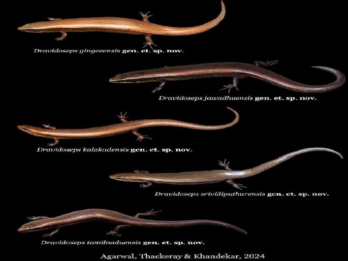 या आहेत पाच प्रजातीद्रविडोसेप्स जिंजीएन्सीस, द्रविडोसेप्स जवाधूएन्सीस, द्रविडोसेप्स कलक्कडएन्सीस, द्रविडोसेप्स श्रीविल्लीपुथुरेन्सीस आणि द्रविडोसेप्स तामिळनाडूएन्सीस या पाचही प्रजातींचे नामकरण त्यांच्या तामिळनाडू राज्यातीलआढळ क्षेत्रावरुन केलेले आहे. रायोपा गोवाएन्सीस, सबडोल्युसेप्स पृदी आणि सबडोल्युसेप्स निलगीरीएन्सीस या तीन प्रजातींचे वर्गीकरणातील स्थान बदलून नव्याने शोधलेल्या कुळामधे निश्चित केलेले आहे.