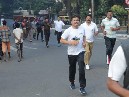 राष्ट्रीय एकात्मतेचा संदेश देण्यासाठी बुधवारी आयोजित केलेल्या ‘रन फॉर युनिटी’ मॅरेथॉनमध्ये सहभागी झालेले निवासी उपजिल्हाधिकारी संजय शिंदे व कर्मचारी. (छाया : आदित्य वेल्हाळ)