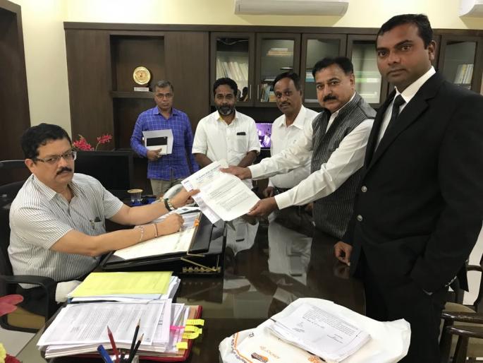 सर्किट बेंच कोल्हापुरात उभारण्यासाठी शेंडा पार्क येथील जागेचा प्रस्ताव लवकर शासनाला पाठवावा, या मागणीचे निवेदन पुणे विभागीय आयुक्त डॉ. दीपक म्हैसेकर यांना देताना खंडपीठ कृती समितीचे निमंत्रण अॅड. प्रशांत चिटणीस, उपाध्यक्ष सुशांत गुडाळकर, अभिषेक देवरे, विवेक घाटगे व उपायुक्तप्रताप जाधव.