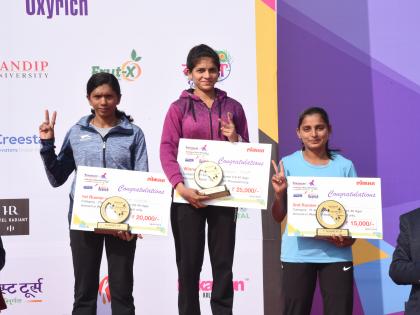 महिलांमध्ये १) (बीब क्र. के २१११४)-सायली बलराम कुपटे, गडहिंग्लज (महागाव) (१ तास ३० मि. ३५ सेकंद), २) (बीब क्र. के २१३२२)- राजश्री परिहार (१ तास ३७ मि. ३३ सेकंद), ३) (बीब क्र. २१०६६) प्रतीक्षा (१ तास ४० मि. १४ सेकंद).