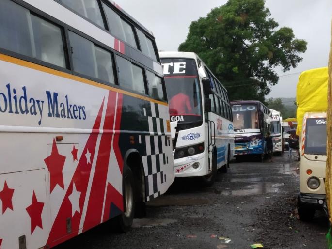 फेजिवडे येथील स्मशानशेड जवळ अडकलेल्या दोन ट्रॅव्हल ग्रामस्थांच्या मदतीने सुखरूप बाहेर काढल्या आहेत व त्या सध्या फेजीवडे गावात लावण्यात आल्या आहेत.