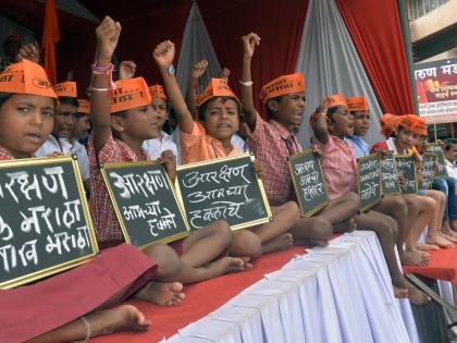 ‘एक मराठा - लाख मराठा,’ ‘आरक्षण आमच्या हक्काचे’ अशा घोषणा देत ही सुमारे ५ ते १२ वयोगटातील मुले या ठिय्या आंदोलनात सहभागी झाली होती. यापैकी अद्वैत जाधव या मुलाने आपल्या रोखठोक भाषेत मराठा आरक्षणाबाबत भाषण दिले.