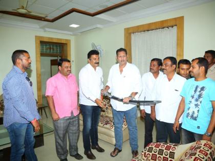 मराठा आरक्षणप्रश्नी शौर्यपीठाच्या कार्यकर्त्यांनी खासदार उदयनराजे यांची सातारा येथे भेट घेऊन त्यांना कोल्हापुरात येऊन ठिय्या आंदोलनात सहभागी होण्याचे निमंत्रण दिले. (छाया : नसीर अत्तार)