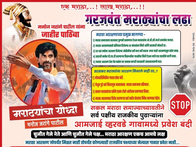 या पार्श्वभूमीवर कोल्हापूर जिल्ह्यातील आमजाई व्हरवडे व खिंडी व्हरवडे या दोन गावात राजकीय पक्षांच्या नेत्यांना प्रवेश बंदी करण्यात आली आहे. तर आगामी सर्व निवडणुकीत मतदानावर बहिष्कार घालण्याचा महत्त्वाचा निर्णय घेण्यात आला आहे. तसेच रास्ता रोको करण्याचा इशारा देत आरक्षणाला विरोध करणाऱ्या सर्वच नेत्यांचा निषेध करण्याचा निर्णय घेतला. मराठा समाजाने आक्रमक पवित्रा घेतल्याने नेत्यांची मोठी कोंडी होणार आहे.