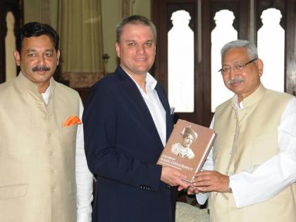 न्यु पॅलेस येथे शाहू छत्रपती यांनी पोलंडचे राजदूत अॅडम बुरक्वोस्की यांना राजर्षी शाहू महाराजांचा चरित्रग्रंथ भेट दिला. (छाया : आदित्य वेल्हाळ)