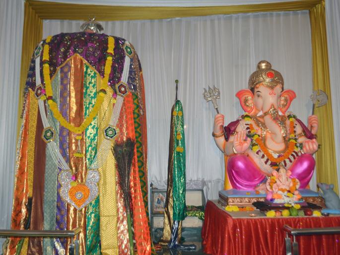 कोल्हापुरातील मानाचा पहिला गणपती म्हणून प्रसिद्ध असलेल्या तुकाराम माळी तालीम मंडळामध्ये गणेशमूर्ती व ‘चाँदसाब वली’ या पंजाची प्रतिष्ठापना एकत्रितपणे करण्यात आली आहे./छाया : नसीर अत्तार