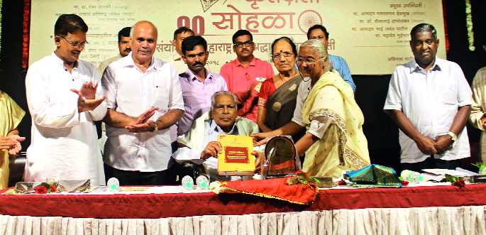 कृतज्ञता सोहळ्यात मेधा पाटकर यांच्या हस्ते प्रा. एन. डी. पाटील यांचा मानपत्र, शाल, स्मृतिचिन्ह व भारतीय संविधानाची प्रत देऊन सत्कार करण्यात आला.
