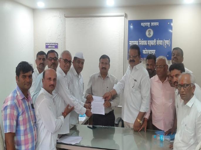 यावेळी ज्येष्ठ संचालक विश्वास पाटील, अरुण डोंगळे यांच्यासह संचालक उपस्थित होते. दूध संस्था कर्मचारी संघटनेचे अध्यक्ष के. डी. पाटील यांनी आभार मानले. त्यानंतर बारा तालुक्यांतील संस्था प्रतिनिधी जाऊन सहायक निबंधक (दुग्ध) प्रदीप मालगावे यांना निवेदन दिले.