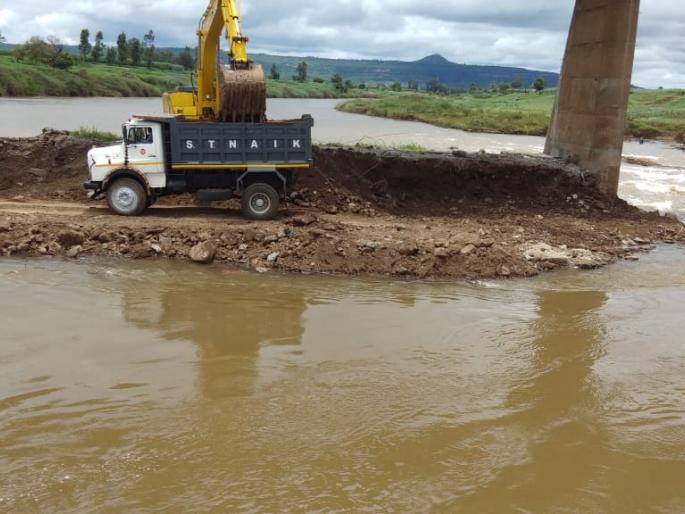 रमेश पाटीलकसबा बावडा: राजाराम बंधाऱ्याजवळ नदीपात्रात नवीन पुलाचे काम सुरू आहे. त्यामुळे नदीपात्रात मोठ्या प्रमाणात भराव टाकण्यात आला आहे. या नदीपात्रातील भरावामुळे प्रवाहास अडथळा येत आहे. हा भराव त्वरित हटवावा अशी मागणी पाटबंधारे विभागाने सार्वजनिक बांधकाम विभागाकडे लेखी पत्राद्वारे केली होती. तरीही ठेकेदार कंपनीने हा भराव काढण्याकडे दुर्लक्ष केले होते. शुक्रवारी या बाबत पाटबंधारे विभागाकडून संबंधित ठेकेदार कंपनीवर कारवाईचा इशारा देण्यात आल्यानंतर हा भराव हटवण्याचे काम सुरू झाले.राजाराम बंधारा येथे गेल्या अडीच वर्षांपासून नवीन पुलाचे बांधकाम सुरू आहे. त्यासाठी नदीपात्रात भर घालण्यात आली आहे. सध्या बंधाऱ्यातून खालील बाजूस पाणी सोडण्यात आले आहे. मात्र हे सोडलेले पाणी नदीपात्रात असल्याने भरीमुळे तटून पाण्याला फुगी येत आहे.