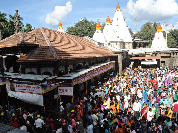 कोल्हापूर : शारदीय नवरात्रौत्सवाच्या चौथ्या माळेला (बुधवारी) कोल्हापूरच्या अंबाबाईची यमुनाष्टक रूपात पूजा बांधण्यात आली. बुधवारी गांधीजयंतीची सुट्टी असल्याने मंदिरात पहाटेपासूनच भाविकांची अलोट गर्दी होती. एका दिवसात दीड लाखाहून अधिक भाविकांनी देवीच्या दर्शनाचा लाभ घेतला. जुना राजवाड्यातील तुळजाभवानी देवीची सिंहवाहिनी देवीच्या रूपात सालंकृत पूजा बांधण्यात आली.रोजच्या धार्मिक विधीप्रमाणे बुधवारी सकाळी अभिषेक व दुपारची महाआरती झाल्यानंतर अंबाबाईची आदी शंकराचार्यांनी रचलेल्या यमुनाष्टक रूपात पूजा बांधण्यात आली. यमुनाष्टक म्हणजे यमुनेची स्तुती. शंकराचार्यांनी त्यांच्या तीर्थयात्रेच्या काळात यमुनेची आठ श्लोकांमध्ये स्तुती रचली असावी. गंगेप्रमाणेच यमुनेलाही हिंदू धर्मात वेगळे महत्त्व आहे. कृष्णचरित्राशी यमुनेचा घनिष्ठ संबंध आहे. श्रीकृष्णाच्या महत्त्वाच्या लीलांची यमुना नदी साक्षी आहे. कालांतराने कृष्णसंप्रदायामध्ये यमुनेचे दैवत्व वाढीला लागून तिला समूर्त करण्यात आले. जसे गंगेचे वाहन मगर / मकर तसे यमुनेचे वाहन कासव मानले जाते.यमुनाष्टकातील श्लोकात आदी शंकराचार्यांनी देवीचे वर्णन पुढीलप्रमाणे केले आहे : ‘हे देवी यमुने, तुझ्या काठी नंदनंदाच्या म्हणजेच कृष्णाच्या लीला घडल्या. तुझ्या काठी मल्लिका आणि कदंबाची फुले बहरलेली असतात. जे तुझ्या प्रवाहात स्नान करतात त्यांना तू भवसागरातून पार करतेस. हे कलिंद पर्वताच्या मुली, कालिंदी, सदैव माझ्या मनाचा कलुषितपणा तू धुऊन काढ.’ या वर्णनानुसार देवीचे बुधवारचे रूप होते. ही पूजा उमेश उदगावकर, पुरुषोत्तम ठाणेकर, श्रीनिवास जोशी यांनी बांधली.दरम्यान, बुधवारची सुट्टी सत्कारणी लावत परस्थ भाविक कोल्हापुरात मोठ्या संख्येने दाखल झाले होते. पहाटे दीड वाजल्यापासून दर्शनरांगा लागल्या होत्या. दुपारी कडक ऊन असले तरी गर्दी कमी झालेली नव्हती. रात्री उशिरापर्यंत मंदिर व बाह्य परिसर गर्दीने फुलून गेला होता.तिरूपती देवस्थानकडून शालू अर्पणदरम्यान, गुरुवारी दरवर्षीप्रमाणे यंदाही शारदीय नवरात्रौत्सवानिमित्त श्री अंबाबाईला मानाचा शालू अर्पण करण्यात आला. तिरूपती देवस्थानचे अध्यक्ष वाय. व्ही. सुब्बारेड्डी यांच्यासह पाच अधिकाऱ्यांच्या उपस्थितीत देवस्थान समितीकडे हा शालू सुपूर्द करण्यात आला. समितीच्या कोषाध्यक्षा वैशाली क्षीरसागर यांनी शालूचे पूजन केले. या शालूचा रंग पोपटी आहे. यावेळी समितीचे अध्यक्ष महेश जाधव, सदस्य शिवाजीराव जाधव, राजू जाधव यांच्यासह पदाधिकारी उपस्थित होते.मुलाच्या निधनाची अफवामंगळवारी (दि. १) रात्री साडेनऊ वाजता अंबाबाईच्या पालखी सोहळ्यादरम्यान तोफेची सलामी देतानाचा व