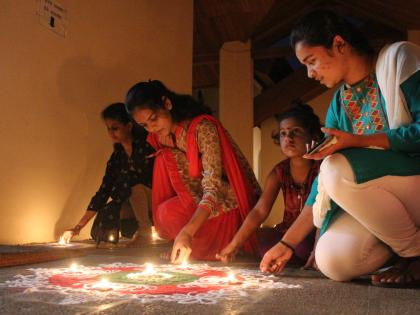 कोल्हापुरातील कसबा बावड्यातील शाहू जन्मस्थळ येथे दीपावलीनिमित्त सकल मराठा समाजातर्फे आयोजित दीपोत्सवामध्ये सुंदर रांगोळ्या काढून सर्वांचे लक्ष वेधले.(छाया : दीपक जाधव)