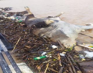 कोल्हापूर: भोगावती नदीवरील कोगे येथील पुलावर मृत गवा अडकला, बघ्यांची मोठी गर्दी