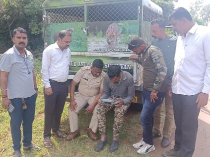 बचाव पथक ड्रोनद्वारे बछड्याचा शोध घेत आहे ...