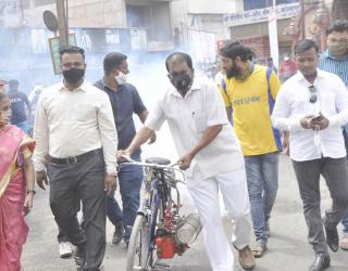 गडहिंग्लजमध्ये राष्ट्रवादीतर्फे धूर फवारणीस प्रारंभ