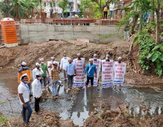 आम आदमी पार्टीतर्फे ओढ्यात उतरून आंदोलन