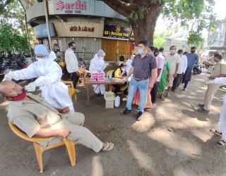 कोल्हापुरात विनाकारण रस्त्यावर फिरणाऱ्याची रॅपिड ॲंटीजन चाचणी