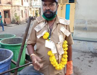 कोल्हापूर : CoronaVirus Lockdown :आरोग्य कर्मचाऱ्याचा नोटांचा हार घालून सत्कार