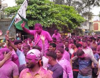 कोल्हापूर : अजिंक्यतारा गुलालात न्हाला, तरुणाईचा जल्लोष