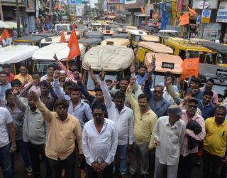 कोल्हापूर : मराठा आरक्षणासाठी शिवाजी चौकात रिक्षाचालकांचा ठिय्या