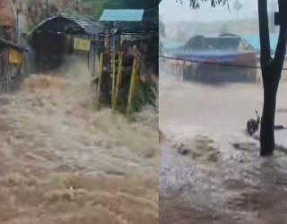 सौंदत्ती यल्लमा डोंगरावर मुसळधार पाऊस; रस्ता, गाड्या गेल्या वाहून, अनेक भक्त अडकून पडले-video