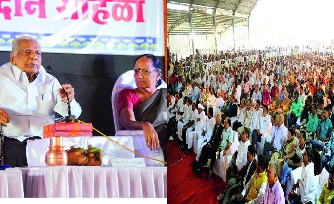 कोल्हापुरात शनिवारी शिवाजी विद्यापीठाच्यावतीने आयोजित शानदार समारंभात प्रा. एन. डी. पाटील यांना ज्येष्ठ नेते शरद पवार यांच्या हस्ते प्राचार्य रा. कृ. कणबरकर पुरस्कार देऊन गौरविण्यात आले. सत्कारानंतर प्रा. एन. डी. पाटील यांनी मनोगत व्यक्त केले. सोबत कुलगुरू डॉ. देवानंद शिंदे आणि सरोज पाटील उपस्थित होते. दुसºया छायाचित्रात प्रा. एन. डी. पाटील यांच्या या पुरस्कार वितरण सोहळ्याला समाजातील विविध स्तरांतील मान्यवर, कार्यकर्त्यांनी तुडुंब गर्दी केली होती.