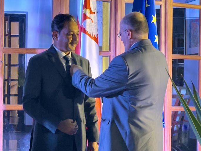 कोल्हापूर : खासदार संभाजीराजे यांना मंगळवारी दिल्ली येथे झालेल्या शानदार समारंभात पोलंडचे परराष्ट्रमंत्री झ्बिग्नीव राऊ यांच्या हस्ते ‘द बेने मेरिटो’ पुरस्कार प्रदान करण्यात आला. दिल्ली येथील पोलंड दूतावासात हा समारंभ झाला. पोलंडच्या नागरिकांना किंवा पोलंड देशाला सहकार्य केलेल्या इतर देशातील नागरिकांना हा पुरस्कार देण्यात येतो.