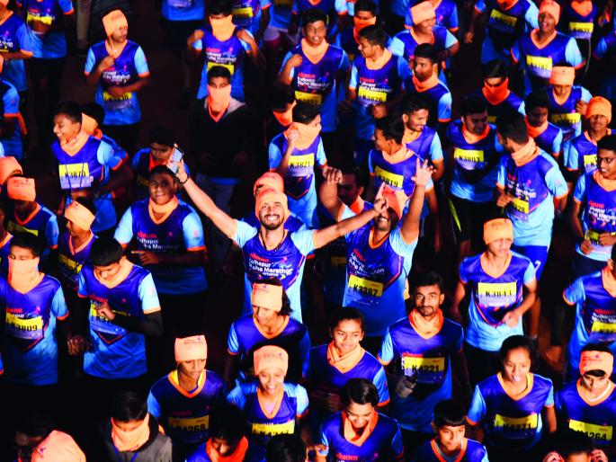 कोल्हापूर : अंगाला झोंबणाऱ्या गार वाºयाची तमा न बाळगता हजारो धावपटूंनी रविवारची पहाट संस्मरणीय केली. निमित्त होते ‘लोकमत महामॅरेथॉन’च्या तिसºया पर्वाचे. जल्लोषी वातावरणामध्ये या सर्वांनीच ही महामॅरेथॉन वेगळ्या उंचीवर नेऊन ठेवल्याने शहरामध्ये जणू काही पहाटऊर्जेच्या लाटाच उसळल्याचे चित्र पाहावयास मिळाले.‘लोकमत महामॅरेथॉन’चे यंदाचे हे तिसरे वर्ष. सर्वच सहभागींना ही स्पर्धा वेळेत सुरू होणार याची खात्री असल्याने, पहाटे पाचपासूनच पोलीस मैदानाकडे स्पर्धक येत होते. वाटेतच ठिकठिकाणी मार्गदर्शन करणारे फलक, पोलीस बंधूंचे मार्गदर्शन यांमुळे सर्वजण वेळेत मैदानावर पोहोचले.मैदानावर आल्यानंतर तर अनेकजण भारावलेच. भव्य अशा या मैदानावर गाण्यांचा ठेका, विद्युत रोषणाईची झलक, सर्वांच्या सोयीसाठी ठिकठिकाणी असलेले स्टॉल्स, नाश्त्याची कुपन्स वाटप ही सर्व प्रक्रिया पार पडली आणि जो-तो वॉर्मअप करू लागला. गाण्यांवर ताल धरत अनेकांनी आपला प्राथमिक व्यायाम पूर्ण केला आणि जो-तो आपल्या गटामध्ये धावण्यासाठी सज्ज झाला.बरोबर साडेपाच वाजता मान्यवरांनी ध्वज दाखविले आणि कसलेल्या धावपटूंनी गतीनं पावलं टाकायला सुरुवात केली. तोपर्यंत १० किलोमीटर धावणारे तयार झाले. अशाच पद्धतीने पाच आणि तीन किलोमीटरच्या मॅरेथॉनला मान्यवरांनी ध्वज दाखविले. मिकी माऊसचा वेश धारण केलेली मुले, लेझीम खेळणाºया महाविद्यालयीन युवती, पोलिसांसह अल्फान्सो शाळेचा बॅँड, ठिकठिकाणी सोडण्यात येणारे फुगे, छत्रपती शिवाजी महाराज यांचा जयघोष आणि ‘गणपती बाप्पा मोरया’चा गजर अशा सगळ्या भारावलेल्या वातावरणामध्ये आपण इतके किलोमीटर धावलो आहे, हेदेखील अनेकांना कळले नाही.चिकाटीने अनेकांनी अव्वल येण्यासाठी प्रयत्न केले, तर काहींनी ‘थांबायचं नाही’ म्हणत घाम पुसत-पुसत अंतर पूर्ण केले. प्रत्यक्ष खासदार, जिल्हाधिकारी, जिल्हा परिषदेचे सीईओ, पोलीस उपअधीक्षक, उद्योजक अशी मान्यवर मंडळी आपल्यासोबत धावत आहेत, हे पाहूनही अनेकांना हुरूप आला.स्पर्धा पूर्ण केल्यानंतर ढोलताशांच्या कडकडाटात फुलांच्या पाकळ्या उधळून स्पर्धकांचे स्वागत करण्यात येत होते. दुखणाºया पायांपेक्षाही शर्यत पूर्ण केल्याचा आनंद अनेकांच्या चेहऱ्यांवर ओसंडून वाहताना दिसत होता. स्पर्धा झाल्यानंतरही जवळपास दोन तास सहभागी सर्वांजण पोलीस मैदानावर उपस्थित होते. नाश्ता घेत, एकमेकांशी गप्पा मारत स्पर्धक आणि सहभागी नागरिकांनी रविवारच्या या सकाळी आपले ‘रिलेशन्स’आणखी घट्ट केले. सेल्फ ी आणि फोटो पॉइंटवर झालेल्या गर्दीने तर अनेकांना रांगेत थांबावे लागले.