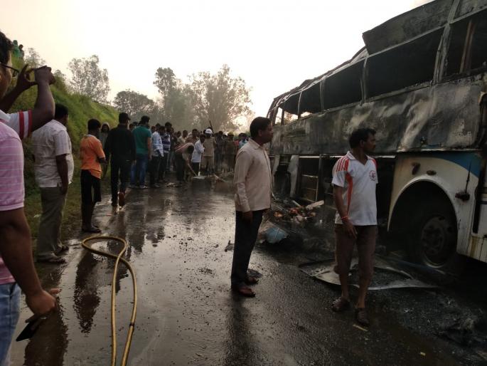 खासगी बस जळून खाक, ३५ प्रवाशी सुखरूप. कोल्हापूरनजीक शेणवडे येथील घटना