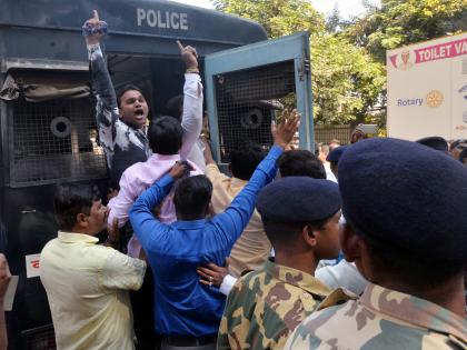 यावेळी या कार्यकर्त्यांनी जय भवानी, जय शिवराय अशा घोषणा दिल्या. त्याला प्रत्युत्तर म्हणून आॅल इंडिया स्टुडन्ट फेडरेशनच्या कार्यकर्त्यांनी कन्हैय्याकुमारच्या सभेच्या समर्थनार्थ इन्कलाब झिंदाबादच्या घोषणा दिल्या. पोलिसांनी हिंदुत्ववादी संघटनांच्या कार्यकर्त्यांना ताब्यात घेतल्यानंतर तणाव काही काळ निवळला.