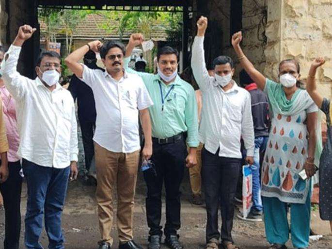 tahsildar office gadhinglaj kolhapur: केंद्र सरकारच्या कर्मचारी विरोधी धोरणाच्या निषेधार्थ महसूल कर्मचारी संघटनतर्फे येथील तहसील कार्यालयासमोर जोरदार निदर्शने करण्यात आली. अखिल भारतीय राज्य सरकारी कर्मचारी महासंघाच्या आवाहनानुसार हे आंदोलन करण्यात आले. यावेळी छातीवर काळ्या फिती लावून केंद्र सरकारच्या निषेधार्थ जोरदार घोषणाबाजी केली.