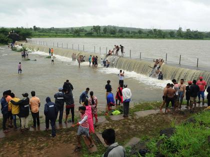 कोल्हापूर जिल्ह्यात गेल्या दोन दिवसांपासून धुवाधार पाऊस सुरू असून सोमवारीही पावसाचा जोर कायम राहिला; त्यामुळे करवीर तालुक्यातील कळंबा तलाव असा पूर्ण क्षमतेने ओसंडून वाहू लागला. हे पाणी पाहण्यासाठी नागरिकांची अशी गर्दी झाली होती. (छाया : आदित्य वेल्हाळ)