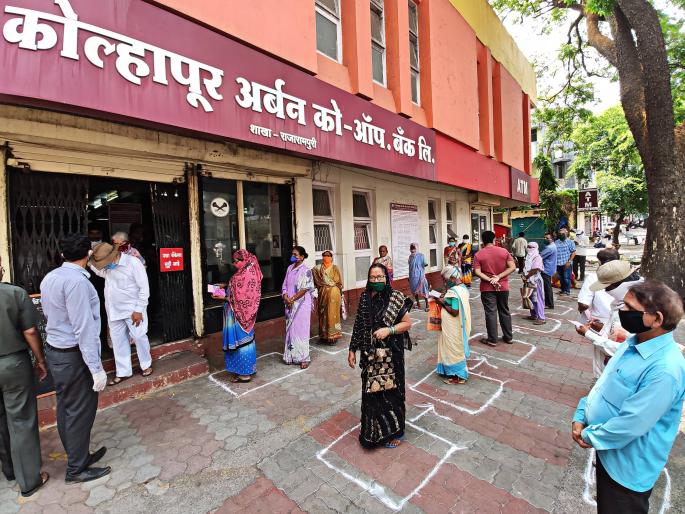 सुट्टी असल्यामुळे त्यांना पैसे काढता आले नाहीत. त्यामुळे सोमवारी बँकांमध्ये पेन्शन आणि कर्मचाऱ्यांनी जमा झालेला पगार काढण्यासाठी गर्दी केली. काही बँकांसमोरील रस्त्यावर रांगा आल्या होत्या. सोशल डिस्टन्ससाठी पट्टे आखून दिले असून, अंतर ठेवून तसेच सॅनिटायझर हाताला लावूनच बँकेमध्ये प्रवेश दिला जात आहे.