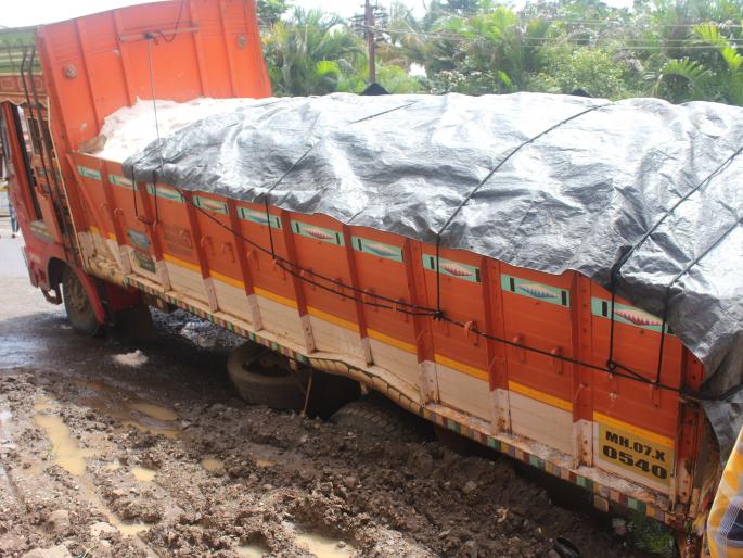 खड्ड्यात ठिकठिकाणी पाणी साचून तळी बनली आहेत. दोन महिन्यांपूर्वी येथे चॅनल काम केल्यानंतर खुदाईची जागा मातीने भरून मुजवली होती. सध्या त्या ठिकाणी मोठ्या प्रमाणात पाणी साठत आहे.सोमवारी पहाटेच्या सुमारास या मार्गावर खड्ड्यात वाळू भरलेला ट्रक रुतून बसला; त्यामुळे वाळूच्या ओझ्याने ट्रक एका बाजूला झुकला. हा ट्रक बाहेर काढण्यासाठी शर्तीचे प्रयत्न करूनही त्याला यश आले नाही. अखेर दुपारी या ट्रकमधील वाळू दुसऱ्या ट्रकमध्ये उतरून हा ट्रक बाहेर काढला. या दरम्यान, वाहतुकीची कोंडी कमी करताना वाहतूक पोलिसांची तारांबळ उडाली.