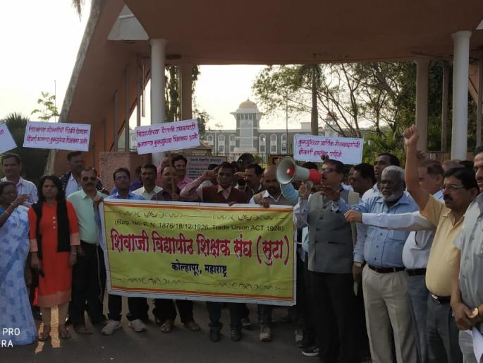 यावेळी झालेल्या निषेध सभेत ‘सुटा’चे सहकार्यवाह सुभाष जाधव यांनी मार्गदर्शन केले. आंदोलनात ‘सुटा’चे ज्येष्ठ सल्लागार प्रा. सुधाकर मानकर, अध्यक्ष आर. एच. पाटील, प्रमुख कार्यवाह डी. एन. पाटील, कार्यालय कार्यवाह यु. ए. वाघमारे, उपाध्यक्ष अरुण पाटील, ए. बी. पाटील, एस. ए. बोजगर, टी. व्ही. स्वामी, श्रद्धा कोठावळे, अनिता कणेगावकर, सुनीता अमृतसागर, ए. पी. देसाई, सचिन पाटील, आदी सहभागी झाले. दरम्यान, विद्यापीठ विद्या परिषदेची बैठक असल्याने कुलगुरूंच्या वतीने कुलसचिव डॉ. विलास नांदवडेकर यांनी ‘सुटा’चे निवेदन स्वीकारले.