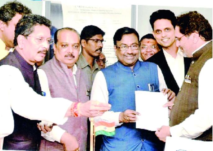 महाराष्ट्र चेंबर आॅफ कॉमर्सच्या शिष्टमंडळाने मुंबईत अर्थमंत्री सुधीर मुनगंटीवार यांची भेट घेऊन निवेदन दिले. यावेळी अर्थ राज्यमंत्री दीपक केसरकर, अध्यक्ष संतोष मंडलेचा, उपाध्यक्ष ललित गांधी, समीर दुधगांवकर, आशिष पेडणेकर, आदी उपस्थित होते.