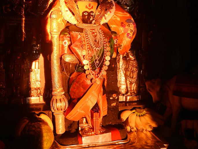 कोल्हापूर : करवीरनिवासिनी श्री अंबाबाईच्या दक्षिणायन किरणोत्सवात गुरुवारच्या मावळतीला अंबाबाईच्या मूर्तीस सूर्यस्नान झाले. सोनसळी किरणांनी सायंकाळी पाच वाजून ४७ व्या मिनिटांनी देवीच्या मुखावर येत तिला अभिषेक घातला. दक्षिणायन किरणोत्सव दोन दिवस उशिरा होत असल्याने आज, शुक्रवारीदेखील पूर्ण क्षमतेने किरणोत्सव होण्याची शक्यता आहे.करवीरनिवासिनी श्री अंबाबाईच्या दक्षिणायन किरणोत्सवाचा गुरुवारी पाचवा दिवस होता. हा अखेरचा दिवस असल्याने या दिवशी तरी सूर्यकिरणे देवीच्या चेहऱ्यापर्यंत जाऊन किरणोत्सव पूर्ण होईल, अशी अपेक्षा सार्थ ठरली. सायंकाळी पाच वाजता महाद्वार कमानीतून आलेल्या किरणांनी प्रवासाचा एक-एक टप्पा पार करीत पाच वाजून ४४ व्या मिनिटांनी देवीचा चरणस्पर्श केला. त्यानंतर पुढे सरकत-सरकत पाच वाजून ४७ व्या मिनिटांनी किरणे चेहऱ्यावर आली.