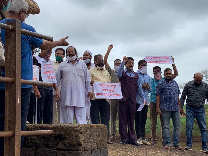 कोल्हापूर : जिल्ह्यात कोरोनाचा कहर असताना कोरोना रुग्णांवर उपचारासाठी सीपीआरसमोरील न्यायालयाची जुनी इमारत देण्यास नकार देणाऱ्या राज्य शासनाच्या अधिकाऱ्यांचे प्रतीकात्मक पंचगंगा नदीत विसर्जन करून निषेध नोंदवला. एकाने दीपमाळेवर चढून नदीत उडी मारली. आंदोलकांनी निदर्शने करत शंखध्वनी केला. नागरी कृती समितीच्यावतीने बुधवारी दुपारी पंचगंगा घाटावर आंदोलन केले.कोल्हापुरात कोरोना संसर्ग झपाट्याने वाढत आहे. आरोग्य प्रशासनास उपचारासाठी जागा अपुरी पडत आहे. न्यायालयाची जुनी इमारत कोविड केअर सेंटरसाठी द्यावी, अशी मागणी कृती समितीने केली, पण संबंधित इमारत मागू नका, असा स्पष्ट आदेश राज्याचे मुख्य सचिव संजयकुमार यांनी जिल्हा प्रशासनाला दिला. त्याच्या निषेधार्थ नागरी कृती समितीच्यावतीने हे अनोखे आंदोलन केले.आंदोलकांनी निषेधाचे व मागण्यांचे फलक उंचावत नदी घाटावर शंखध्वनी केला. एका आंदोलकाने तोंडावर अधिकाऱ्याचा मुखवटा लावून दीपमाळेवर चढून इमारत देणार की जीव घेणार असे म्हणतच पाण्यात उडी टाकली. आंदोलनात अशोक पवार, रमेश मोरे, दिलीप देसाई, रामभाऊ कोळेकर, उदय भोसले, सुनील मोहिते, राजेश वरक, संभाजीराव जगदाळे, प्रभाकर डांगे, विनोद डुणुंग, समर्थ डांगे, विक्रांत पाटील-किणीकर, माणिक मंडलिक, अजित सासणे, महादेव पाटील, परवेज सय्यद, श्रीकांत भोसले, चंद्रकांत सूर्यवंशी, भाऊ सुतार, चंद्रकांत पाटील, पंपू सुर्वे, आदी उपिस्थत होते.सदोष मनुष्यवधाचा गुन्हा नोंदवाकोविड उपचारासाठी जागा मागू नका, देणार नाही म्हणणाऱ्या शासन अधिकाऱ्यांविरोधी संबंधित यंत्रणेने सदोष मनुष्यवधाचा गुन्हा नोंदवून दोन दिवसांत कारवाई करावी, अन्यथा कोल्हापूरकरच त्यांच्यावर गुन्हा नोंदवतील, असा इशारा कृती समितीने दिला. लोकप्रतिनिधी, मंत्री व बार असोसिएशनने वजन वापरुन ही इमारत उपलब्ध करुन द्यावी, असे आवाहन केले.