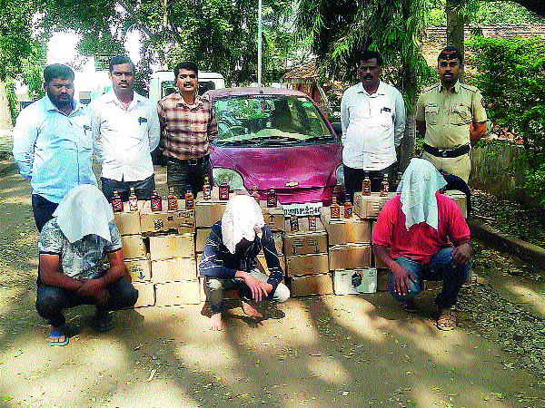 अधिक माहिती अशी, ‘थर्टी फर्स्ट’च्या पार्श्वभूमीवर गोव्याहून महाराष्ट्र-कर्नाटकात बेकायदेशीररीत्या विदेशी मद्याची वाहतूक मोठ्या प्रमाणात केली जाते. करवीर तालुक्यातील काही मद्यतस्करांनी गोव्याहून मद्यसाठा आणून ठेवला होता. ‘थर्टी फर्स्ट’ला त्याची ते विक्री करणार होते. याची माहिती राज्य उत्पादन शुल्क विभागाच्या उपविभागीय आयुक्त वाय. एम. पवार व अधीक्षक गणेश पाटील यांना मिळाली. त्यांनी निरीक्षक संभाजी बरगे व पथकाला कारवाईचे आदेश दिले. त्यानुसार रविवारी कोल्हापूर-गगनबावडा मार्गावर बालिंगा येथे सापळा रचला असता गगनबावड्याहून कोल्हापूरच्या दिशेने जाणाऱ्या संशयित कार (एमएच ०२ बीपी २७४६) पाठलाग करून थांबवण्यात आली. त्यात संशयित स्वप्निल कानकेकर हा आढळून आला. कारमध्ये पाठीमागे ठेवलेले बॉक्स आढळून आले. ते उघडून पाहिले असता विदेशी मद्याच्या बाटल्या सापडल्या.