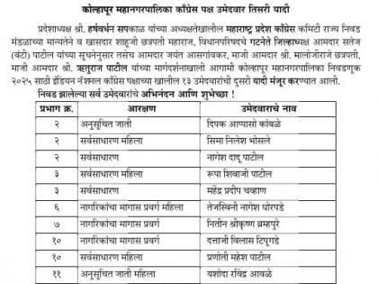 काँग्रेसची शेवटची तिसरी १३ उमेदवारांची यादी
