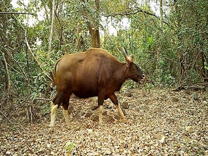 तिल्लारी जंगलात मुक्तपणे विहार करणारा हा गवा.
