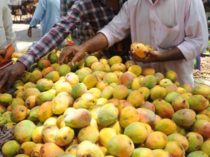 हापूसचा दर अद्यापही थोडा तेजीत असला तरी सामान्य ग्राहकांना लालबाग आंब्याने दिलासा दिला आहे. (छाया- आदित्य वेल्हाळ)