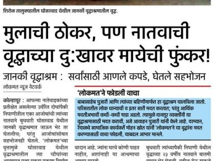 दत्तनगर (कबनूर) येथे ६० वर्षीय लक्ष्मी बाबर या एका पडक्या घरात असल्याचे मला समजले. त्यांची परिस्थिती पाहून, माहिती घेतल्यानंतर त्यांना वृद्धाश्रमात आणले. वैद्यकीय उपचार आणि देखभालीमुळे त्यांची प्रकृती सुधारली. त्या नेहमी म्हणत असत की, माझा एक बाळ आहे, पण कुठे आहे माहित नाही. ‘लोकमत’ मुळे त्यांना त्यांचा मुलगा भेटला. ते पाहून मला खूप आनंद झाला असल्याचे जानकी वृद्धाश्रमाचे बाबासाहेब पुजारी सांगितले. ते म्हणाले, या माय-लेकराची भेट घडविल्याबद्दल मी ‘लोकमत’चे आभार मानतो. लक्ष्मी यांचा मुलगा निलेश हा कोल्हापुरातील एका हॉटेलमध्ये काम करून उदरनिर्वाह करीत आहे. त्याने दर महिन्याला येऊन आईची भेट देण्याची ग्वाही दिली आहे. वृद्धांना पैसे, जेवणापेक्षा नात्याची जास्त गरज असते. त्यामुळे वृद्धाश्रमातील ज्येष्ठ नागरिकांना त्यांच्या नातेवाईकांनी भेटून त्यांच्याशी प्रेमाने संवाद साधावा, असे आवाहन मी करतो.