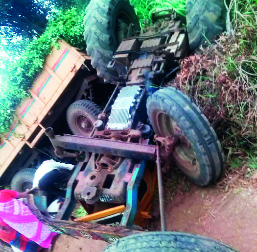 गडहिंग्लज : उन्हाळी भुईमुगाची वेल आणून दारात टाकताना ब्रेक न लागल्याने ट्रॅक्टर उतारतीच्या दिशेने दोन फर्लांग अंतरापर्यंत फरफटत गेला. त्या ट्रॅक्टरच्या इंजिनखाली सापडून ट्रॅक्टरचालक धैर्यशील दत्तात्रय देसाई (वय ३०) यांचा जागीच मृत्यू झाला. त्याच्या शेजारी बसलेले शेतकरी रमेश शंकर गायकवाड (४५) हे ट्रॉलीखाली सापडून गंभीर झाल्याने उपचारासाठी गडहिंग्लजला आणताना वाटेतच त्यांची प्राणज्योत मालवली. हिरलगे (ता. गडहिंग्लज) येथे सायंकाळी पावणेपाचच्या सुमारास हा अपघात झाला. या अपघाताने तालुक्यात हळहळ व्यक्त होत आहे.ग्रामस्थ व पोलिसांतून मिळालेली माहिती अशी, हिरलगे (ता. गडहिंग्लज) येथील शेतकरी रमेश गायकवाड यांनी उन्हाळी भुईमूग लावली होती. भुईमूगाची वेल घरी आणण्यासाठी देसाई यांच्या मालकीचे ट्रॅक्टर (क्रमांक एमएच २४, डी ४४९७) घेऊन ते शेताकडे गेले होते.भुईमुगाची वेल ट्रॉलीतून घरी आणल्यानंतर दारात ब्रेक लावून ट्रॅक्टर थांबवत असताना ब्रेक लागला नाही. त्यामुळे उताराच्या दिशेने वेगाने पुढे जावून ट्रॅक्टर उलटला. ट्रॅक्टरच्या इंजिनखाली सापडल्याने धैर्यशील याचा जागीच मृत्यू झाला. यावेळी ट्रॉलीच्या चाकाखाली सापडून गंभीर जखमी झालेले रमेश यांना गडहिंग्लजला आणताना वाटेतच त्यांचा मृत्यू झाला.रमेश हे प्राथमिक शाळा समितीचे अध्यक्ष आणि ज्ञानदीप वाचनालयाचे सचिव म्हणून ते काम पाहत होते. दोन वर्षांपूर्वीच त्यांनी पाण्याच्या टाकीनजीक नवीन घर बांधले आहे. त्यांच्या घरासमोरून भादवणवाडीकडे जाणारा कच्चा रस्ता उतारतीचा आहे. उतारतीच्या रस्त्यावर बे्रक न लागल्यामुळे हा अपघात घडला. रमेश यांच्या पश्चात वयोवृद्ध आई-वडील, तीन बहिणी, पत्नी, दोन मुली व एक मुलगा असा परिवार आहे. धैर्यशील हा अविवाहित होता. त्याच्या पश्चात आई व भाऊ असा परिवार आहे.कुटुंबांचा आधार गेला !रमेश यांचे वडील शंकर हे मुंबईत गिरणी कामगार होते. वाणिज्य शाखेची पदवी घेऊन देखील रमेश हे शेतीत रमले होते. स्वत:ची शेती उत्तमरित्या कसण्याबरोबरच ऊसतोडणीच्या कामासह अन्यत्र शेतमजुरीलाही ते जात होते. घरानजीकच झालेल्या अपघातात कर्त्या पुरुषाच्या अकाली मृत्यूमुळे त्याच्या वयोवृद्ध आई-वडिलांसह कुटुंबीयांना जबर धक्का बसला आहे.