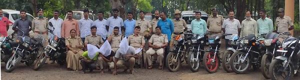 संकेश्वर :बेळगाव व बागलकोट जिल्ह्यातील १२ दुचाकी चोरी करणाऱ्या तीन अट्टल चोरट्यांना हुक्केरी पोलिसांनी आज (मंगळवारी) ताब्यात घेवून त्यांच्याकडून ६ लाख २४ हजार रूपये किंमतीच्या तब्बल १२ दुचाकी जप्त केल्या. याप्रकरणी दाऊद खुदासाब सरकवास (रा. चिमुड, जमखंडी), महेश बसाप्पा मगदूम (रा. कल्लोळी, गोकाक) व शिवानंद महादेव चौगुले (मूळ गाव बेनवाड, सध्या रा. हुक्केरी) या तिघांना पोलिसांनी ताब्यात घेतले आहे.अधिक माहिती अशी, हुक्केरी येथे दुचाकींची तपासणी सुरू असताना पोलिसांना विना नंबर प्लेट व कागदपत्रे नसलेली दुचाकी मिळाल्याने त्यांनी दाऊद व महेशकडे तपासणी केली. यावेळी पोलिसांना संशय आल्याने त्यांनी सखोल चौकशी केली असता दुचाकी चोरी केल्याचे उघडकीस आले. याप्रकरणी अधिक चौकशी केली असता त्यांनी याप्रकरणीतील आणखी एक साथीदार शिवानंद यालाही पोलिसांनी ताब्यात घेतले.या तिघांनीही मिळून हुक्केरी, गोकाक व खणगावमधून प्रत्येकी तर बेळगाव, बनूर, जमखंडी, सावळगी व सिंद्धी कुरबेट्टी येथून प्रत्येकी १ अशा एकूण १२ दुचाकी त्यांनी आजपर्यंत लांबविल्या सांगितले. यामध्ये फॅशन प्रो, प्लॅटीना, हिरोहोंडा, पल्सर या कंपन्यांच्या गाड्या त्यांनी चोरल्या आहेत. चोरीची नोंद हुक्केरी पोलिसात झाली आहे.पोलिस उपअधिक्षक गुरूराज कल्याणशेट्टी, पोलिस निरीक्षक शिानंद गुडनगटी यांनी ही कारवाई केली.