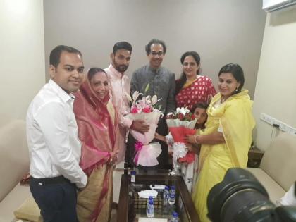 मुंबई येथील ‘मातोश्री’ येथे शिवसेना पक्षप्रमुख उद्धव ठाकरे यांनी हातकणंगलेचे खासदार धैर्यशील माने यांचे पुष्पगुच्छ देऊन स्वागत केले. यावेळी समर जाधव, निवेदिता माने, रश्मी ठाकरे, वेदांतिका माने उपस्थित होत्या.