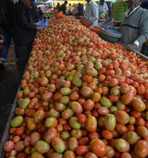 कोल्हापूर : ऐन श्रावणात भाजीपाल्याचे दर कमालीचे गडगडले आहेत. लालभडक टोमॅटोचा दर अक्षरश: मातीमोल झाला असून, घाऊक बाजारात दोन रुपये, तर किरकोळ बाजारात आठ रुपयांपर्यंत टोमॅटो घसरला आहे.