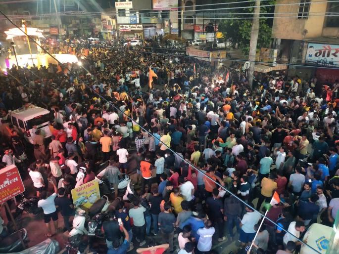 विजयाची चाहूल लागताच अनेक तरुणांनी आपला मोर्चा चौकाकडे वळवला. विजय जवळ येईल तसे राष्ट्रध्वज व भगव्या झेंड्यांसह गर्दी वाढू लागली. स्पीकरवर विजयी गीत वाजवत अनेकजण चौकात थिरकू लागले. विजयावर शिक्कामोर्तब होताच एकच जल्लोष, आतषबाजी करण्यात आली. सुमारे तासभर चाललेल्या जल्लोषानंतर पोलिसांनी येथील गर्दी पांगवत परिसर मोकळा केला.